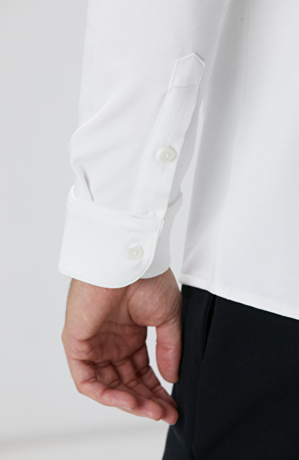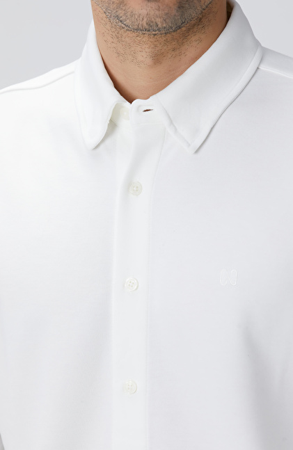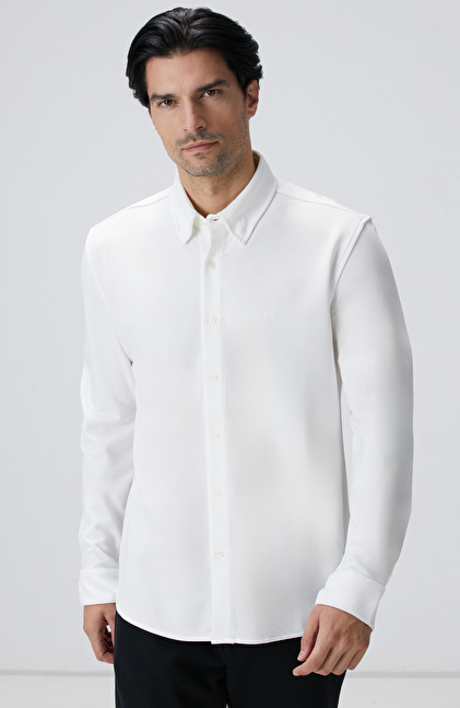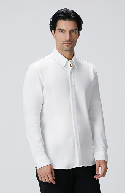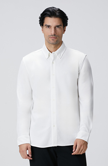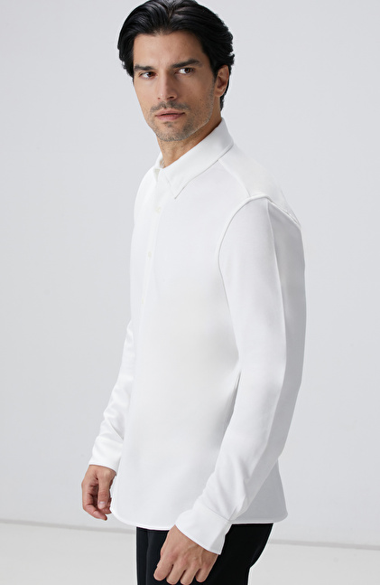 Kırık Beyaz Uzun Kollu Örme Gömlek