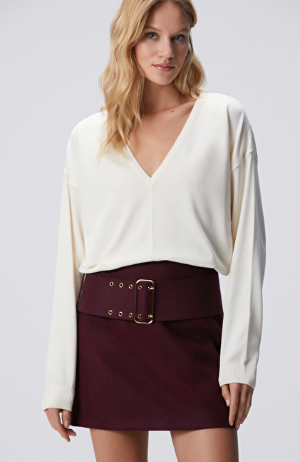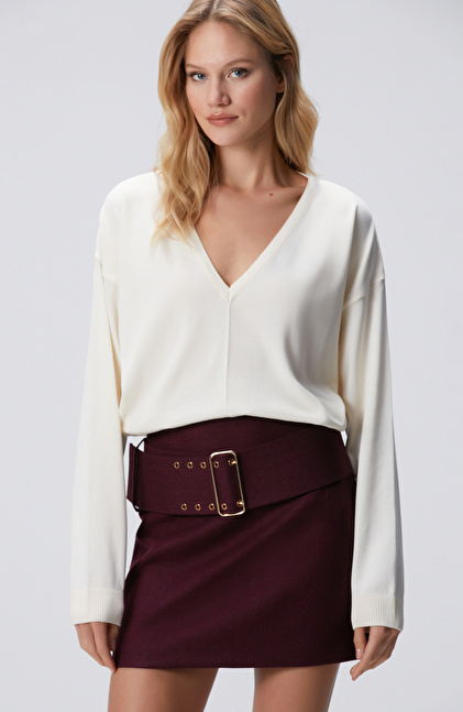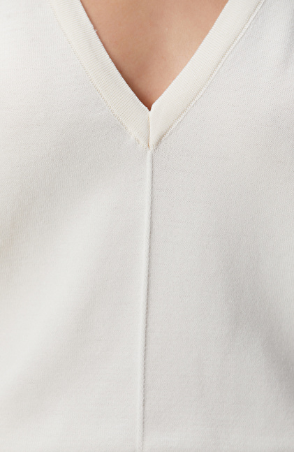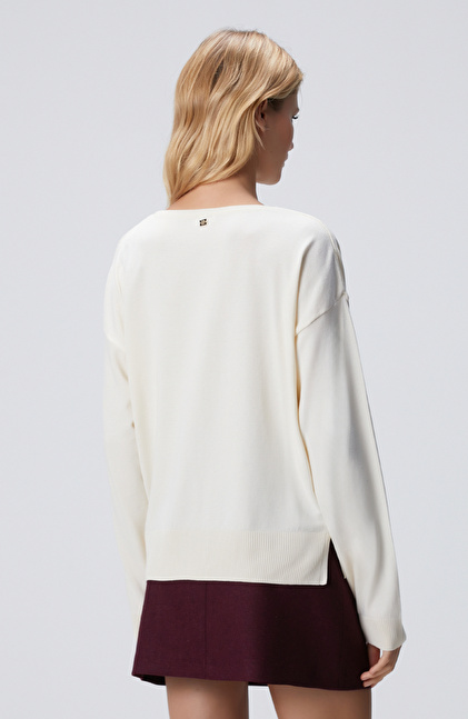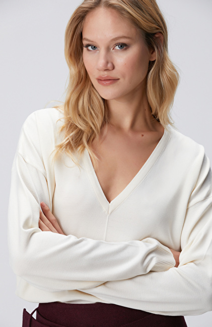 Kırık Beyaz V Yakalı Basic Kazak
