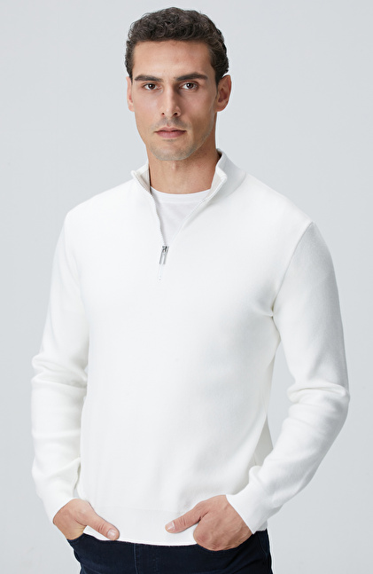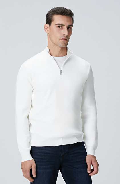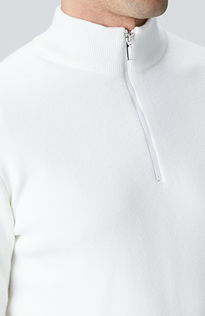 Kırık Beyaz Yakası Fermuarlı Triko Kazak