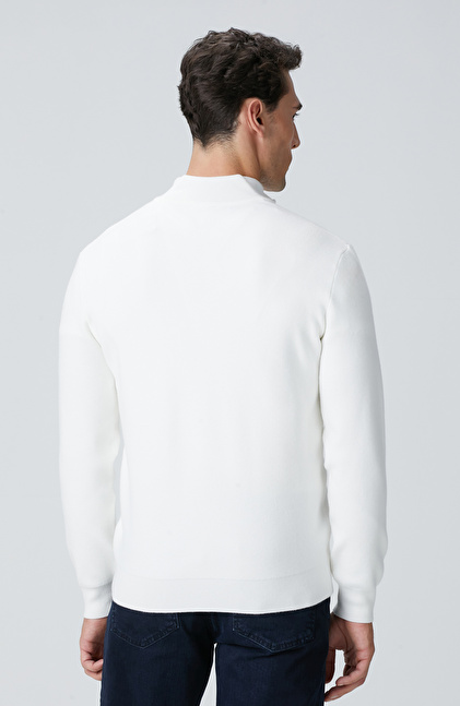 NETWORK Casual Kırık Beyaz Yakası Fermuarlı Triko Kazak