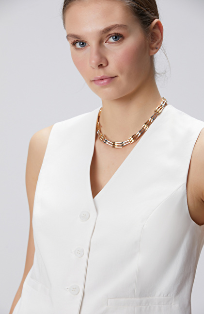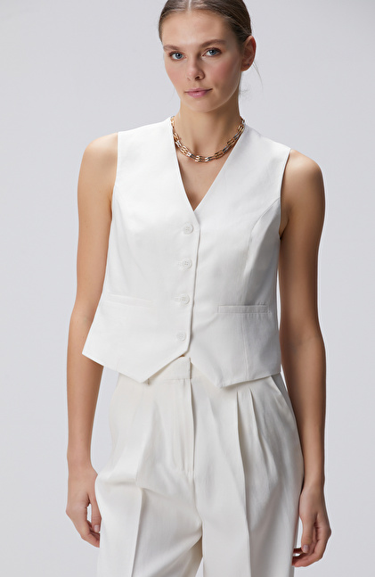 Basic Fit; V Yaka; Düğmeli; Fleto Cepli Yelek