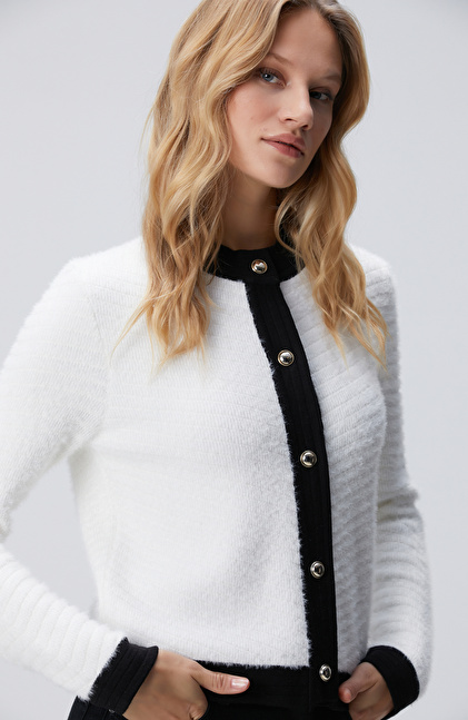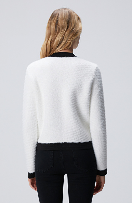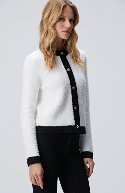 Kırık Beyaz Yumuşak Dokulu Triko Ceket