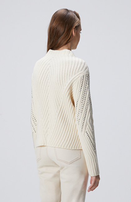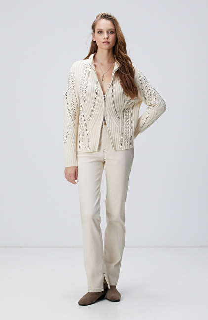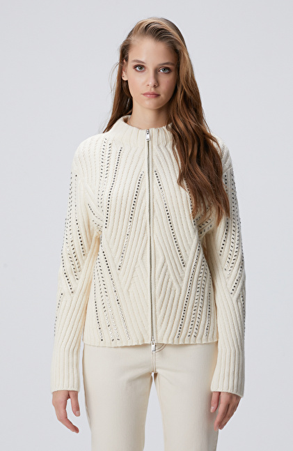 Kırık Beyaz Yün Karışımlı Hırka