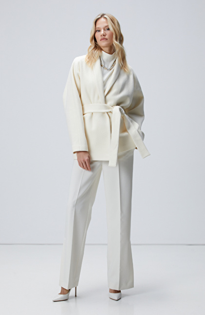 NETWORK Smart Casual Kırık Beyaz Yün Karışımlı Kaban