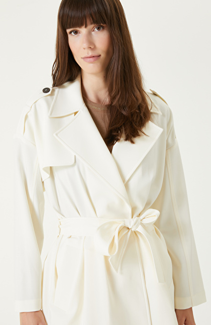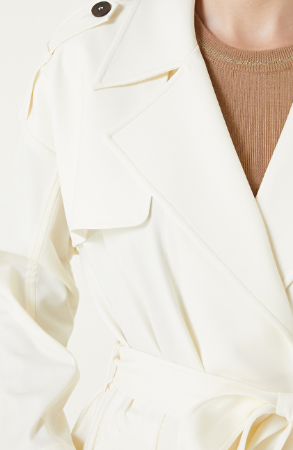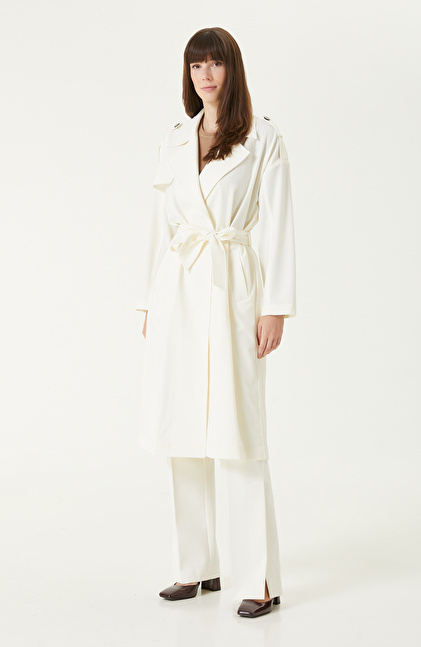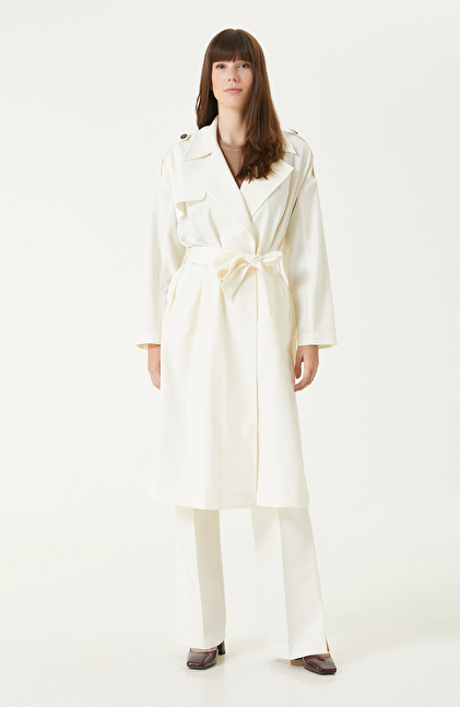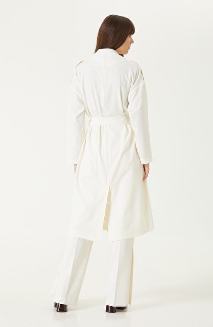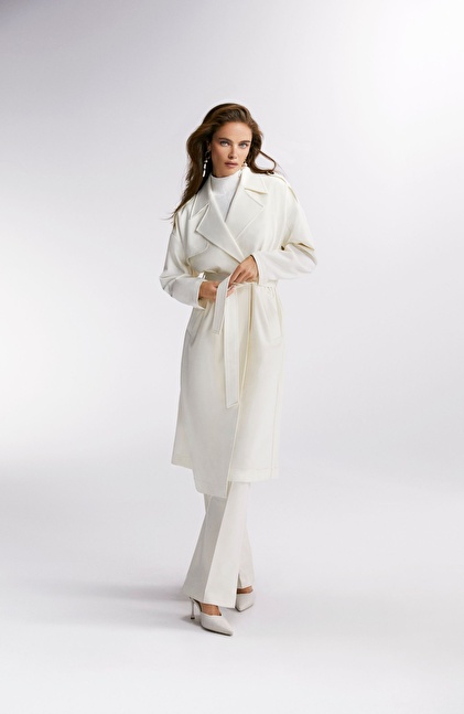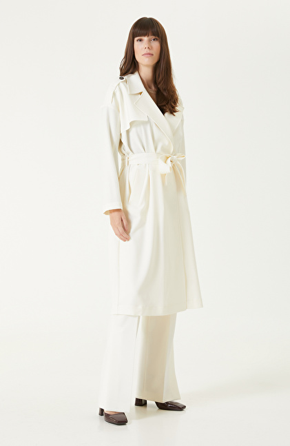 Kırık Beyaz Yün Karışımlı Pardösü