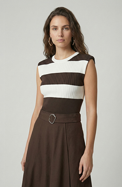 Kırıkbeyaz Vatka Detaylı Triko Kazak