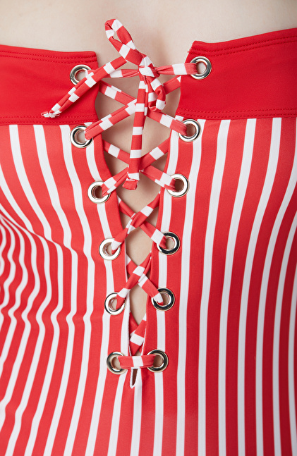 Slim Fit; V Yaka; Askılı; Çizgili Mayo; Kuşgözü Detaylı