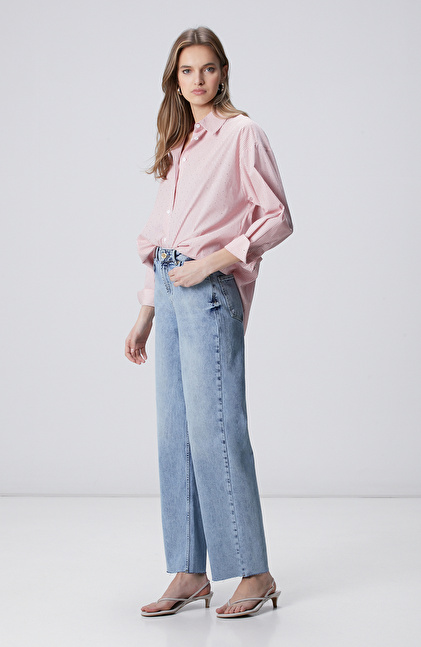 Basic Fit; Gömlek Yaka; Uzun Kol; Dokuma Gömlek; Çizgi Desenli; Taş Baskılı; Cepsiz