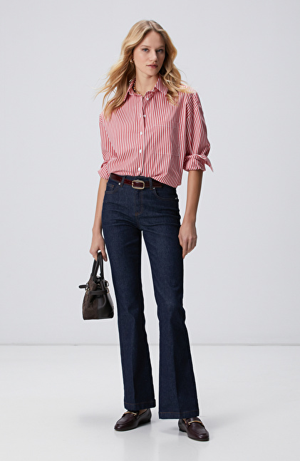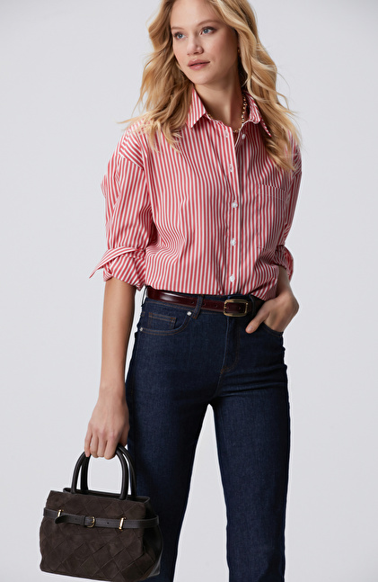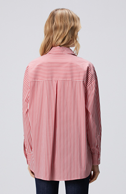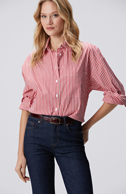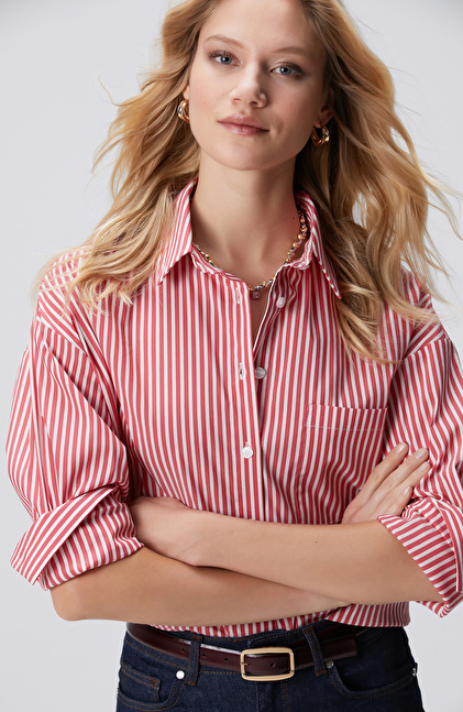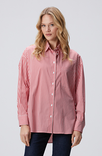 Kırmızı Beyaz Oversize Gömlek