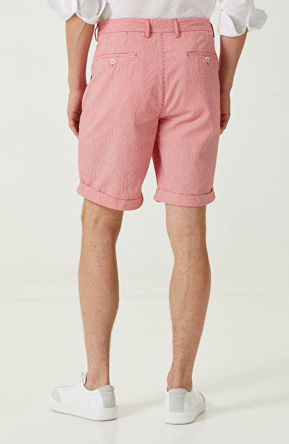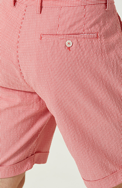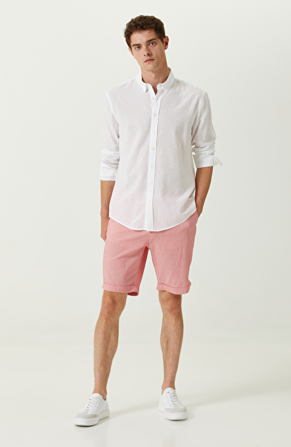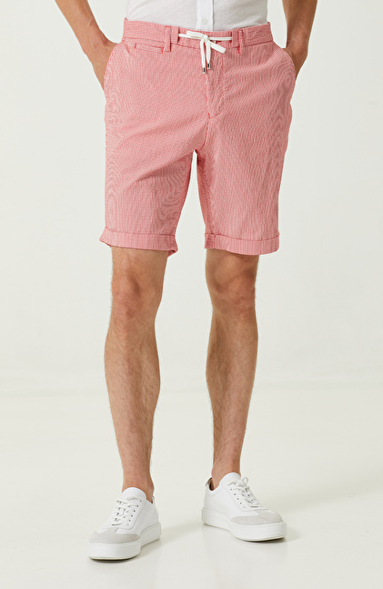 NetWork'ün Casual stiline uygun tasarlanan Kırmızı Çizgili Şort, metropolde yaşayan erkeklerin gündelik ve yaz kombinlerine hitap eden şık parçalar arasında yer alır. Bağcıklı orta beli ile rahat kullanım sağlayan şort, ayarlanabilir özelliğiyle bel çevrenize uyum sağlar. Duble paça tasarımı casual stilinizi desteklemeye devam ederken kırmızı çizgili deseni yaz kombinlerinize hareketli görünüm kazandırır. Yan cepleriyle sportif stile de uyarlanabilir, spor ayakkabılarla eşleştirilebilir. Kırmızı çizgili şortu gündelik şehir giyiminin yanı sıra plaj ve tekne kombinlerinizde de rahatlıkla kullanabilirsiniz. Siz de dokuma şortu; açık mavi tshirt, keten tekne ayakkabısı ve ahşap takılarla kombinleyerek stilinize entegre edebilirsiniz.