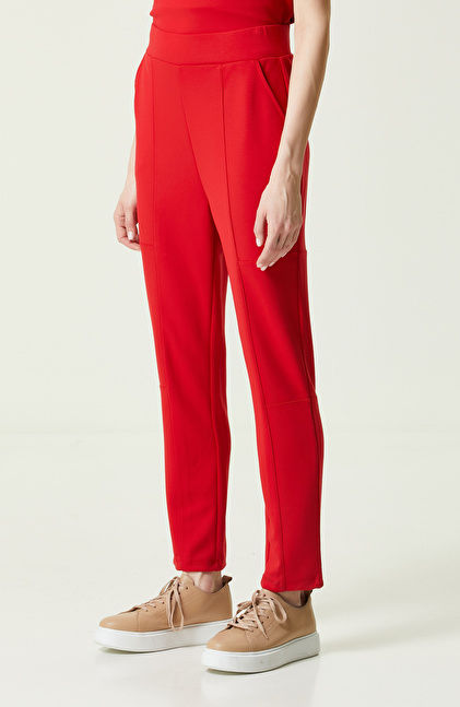 NetWork’ün sosyal hayatta aktif kadınlar için tasarladığı yüksek kaliteli çağdaş parçalarından olan Kırmızı Dar Paça Eşofman, Leisure serisi casual stilini yansıtır. Modal kumaşlı yumuşacık penye dokusuna sahip tasarım, normal bel ve dar paça detayları ile oluşturulur. Dikiş detaylı straight form modal eşofman, sıcak yaz günlerinde sportif şıklık yakalamak için idealdir. Tasarımın ön kısmında NetWork logosu yer alır. Düz kırmızı renkli zamansız tasarım, basic fit kesimli olarak üretilir. Vücuda tam uyumu için NetWork ölçü tablosundan yardım alabilirsiniz. Bu tasarımı aynı renk tonlarında bir sweatshirt, spor sırt çantası, sneakerlar ve kep şapka ile dinamik şekilde kombinleyebilirsiniz.