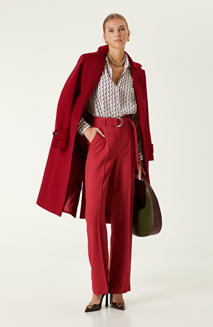 Şık giyinmeye özen gösteren cesur kadınların öncelikli tercihleri arasında yer alan Kırmızı Flare Paça Pantolon, konforlu kullanımıyla sıkça tercih edilir. NetWork’ün Business kadın sonbahar koleksiyonunda yer alan pantolon, bulunduğunuz ortamda tüm dikkatleri üzerinize çekmeyi başarır. Regular fit kalıbı ile profesyonel iş hayatında da güçlü bir duruş sergilemenizi sağlayan bu parça, zamansız tasarımıyla stilinizi öne çıkarır. Normal bel formuna ve flare paça kalıbına sahip olan tasarım, kırmızı rengiyle iddialı kadınların etkileyici aurasını gözler önüne serer. Kemer detayı ile dinamik bir tarzı yansıtan kırmızı renkli pantolonu; aynı tonlarda kaban, desenli gömlek, gold detaylı stiletto ve haki kol çantası ile kombinleyebilirsiniz.