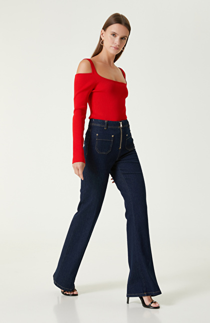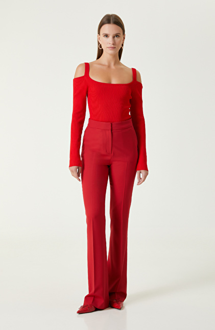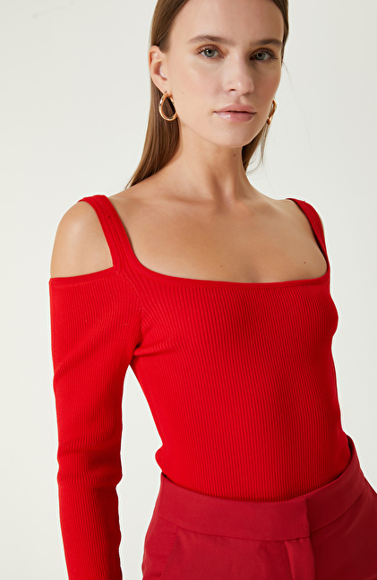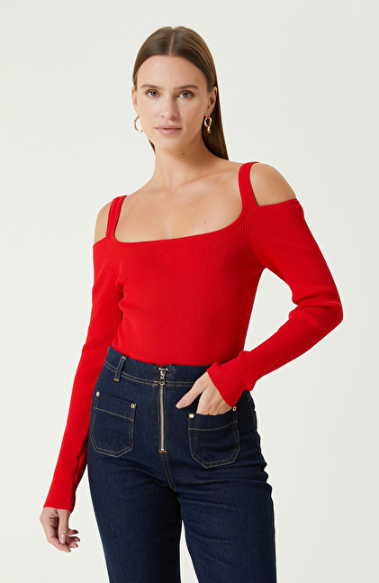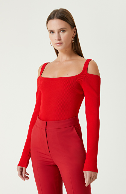 NETWORK Casual Kırmızı Omuz Detaylı Triko Kazak