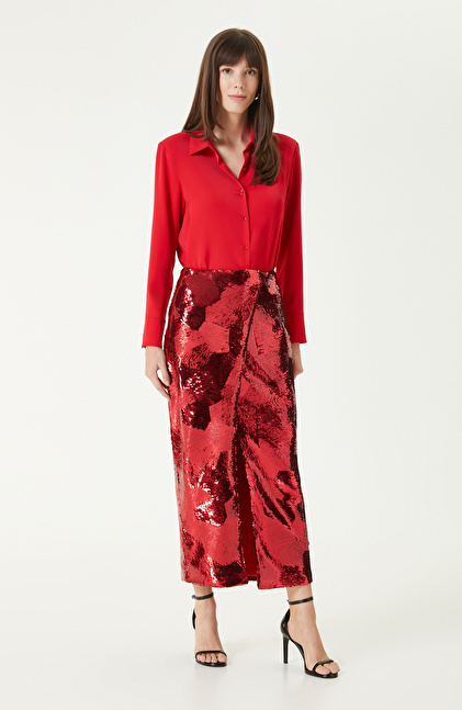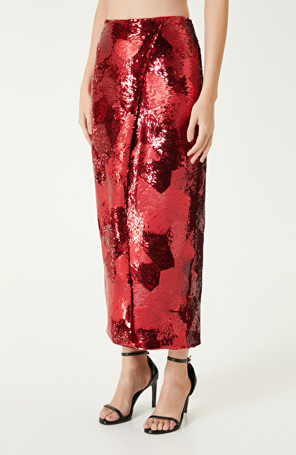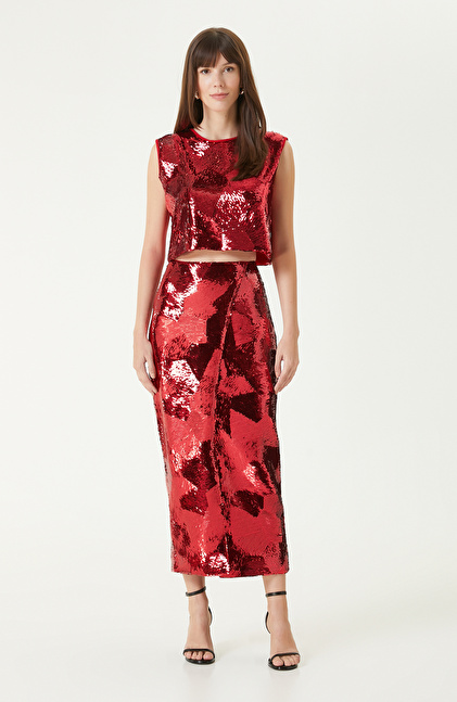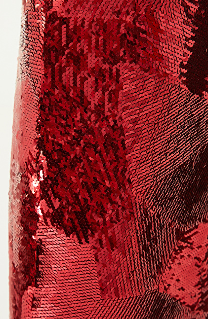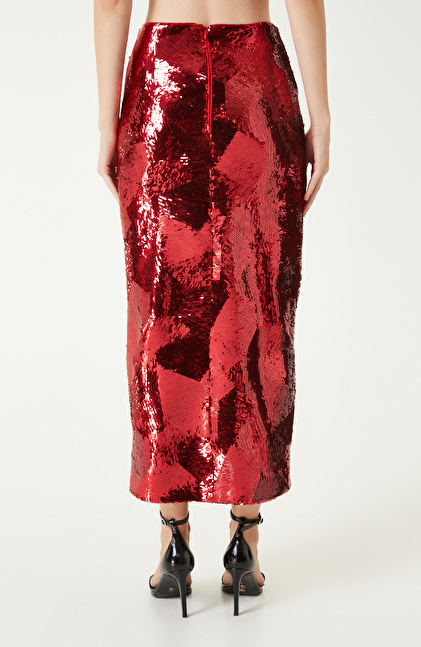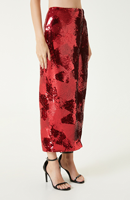 Kırmızı Payetli Midi Etek
