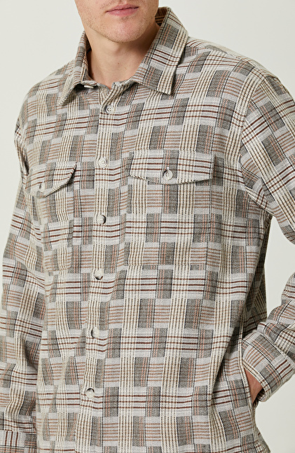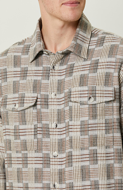 Uzun Kol; Dokuma; Klasik Yaka; Slim Fit; Kareli; Düğmeli Cep