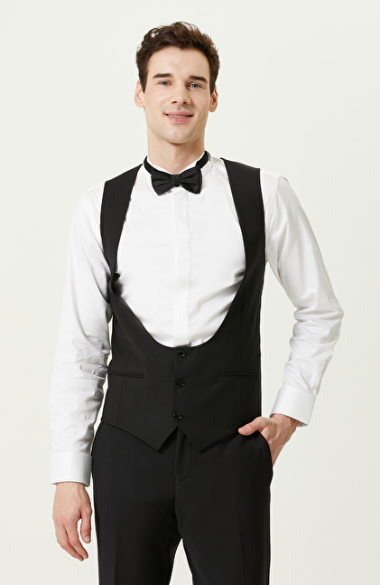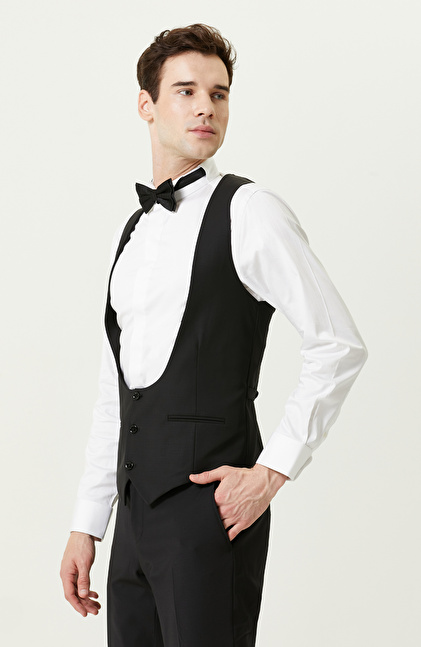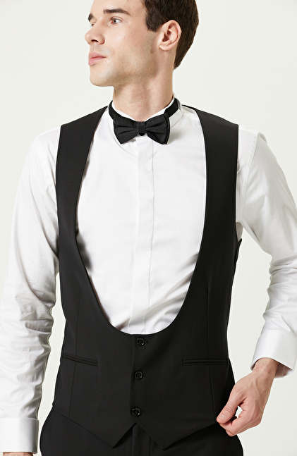 Kolsuz V Yaka Siyah Smokin Yeleği