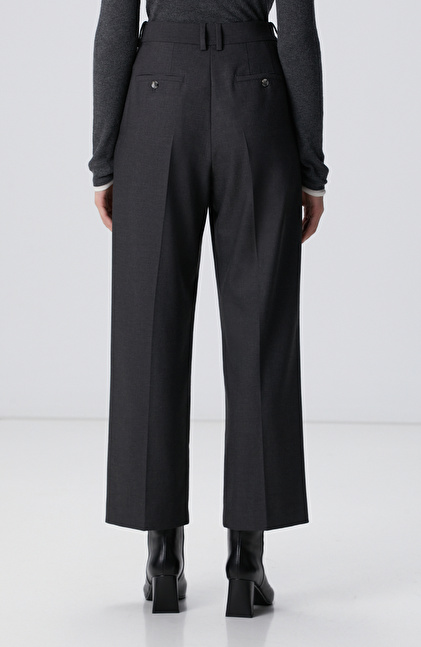Koyu Gri Pileli Yüksek Bel Pantolon