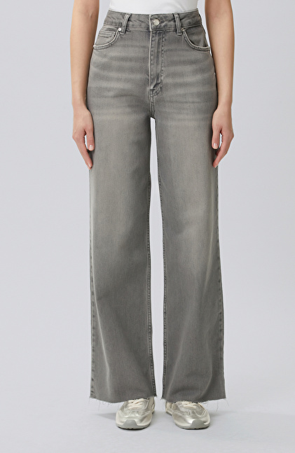 Koyu Gri Wide Leg Denim Pantolon