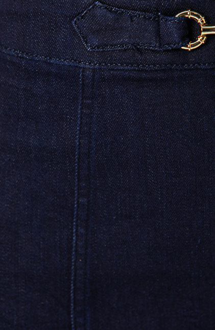 Koyu İndigo Mavi Toka Detaylı Mini Denim Elbise