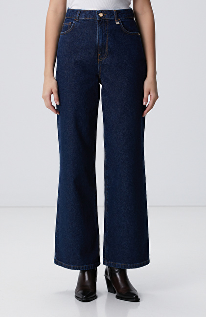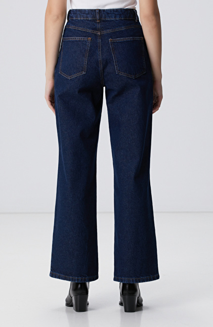 Koyu Lacivert Yüksek Bel Denim Pantolon