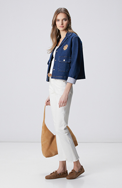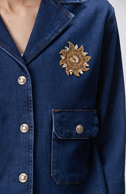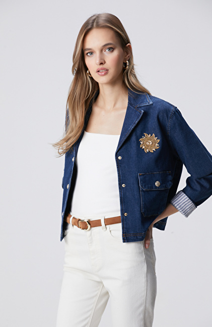 Koyu Mavi İndigo Çıtçıt Kapatma Denim Ceket