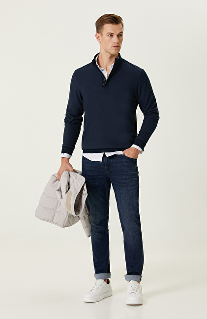 Sokak stillerine uyum sağlayan ve giyimine özen gösteren erkeklere hitap eden Lacivert 5 Cepli Pantolon, NetWork Casual koleksiyonunda yer alır. Soğuk havalarda kullanabileceğiniz kaliteli pamuklu kumaşla üretilmiş olan pantolon son derece dayanıklıdır. Uzun süre şıklığını korur ve üzerinizde kusursuz görünür. Lüks moda anlayışını tam olarak yansıtan model, gün içinde kombinlerinize elegan dokunuş yapar. Pantolon, klasik tasarımı ile farklı parçalarla kolayca uyum sağlayabilir. 5 cepli olduğundan bu pantolonu fonksiyonel bir şekilde kullanabilirsiniz. NetWork yazılı etiketi, tasarımın özgün detaylarını vurgular. Siz de bu pantolonu; beyaz gömlek, lacivert triko ve beyaz sneakerla kombinleyebilirsiniz.