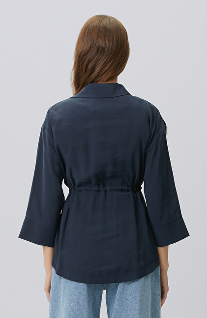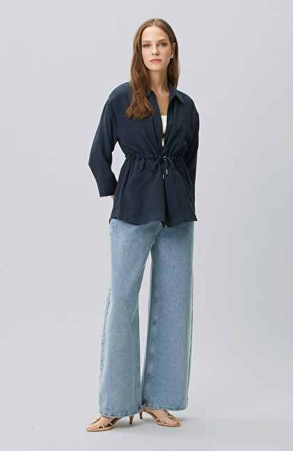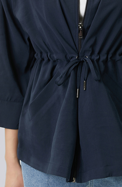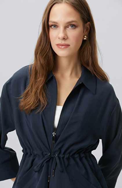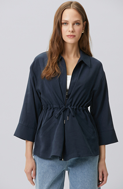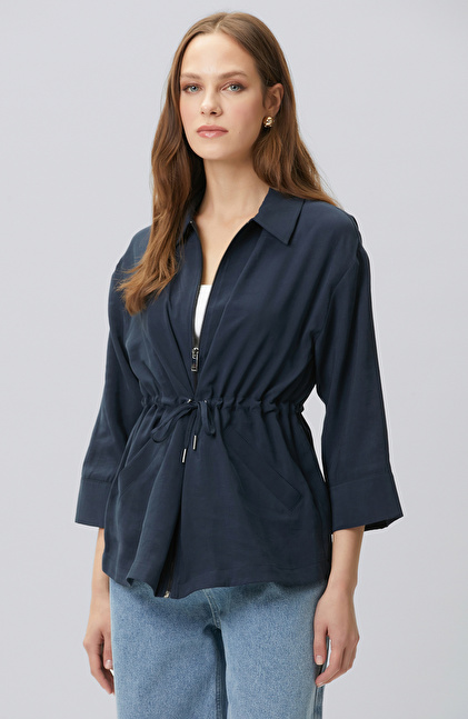 Basic Fit; Gömlek Yaka; Fermuarlı; Beli Büzgülü; Astarsız; Dokuma Ceket; Truvakar Kol; Diyagonal Desenli; Cepli