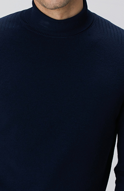Lacivert Balıkçı Yaka Triko Kazak
