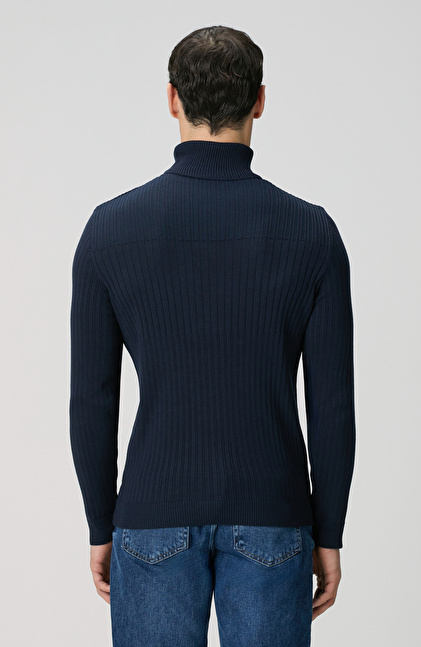 Lacivert Balıkçı Yaka Triko Kazak