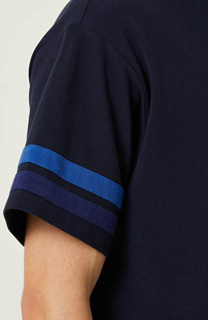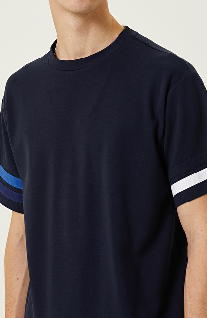 Lacivert Baskılı Bisiklet Yaka T-Shirt