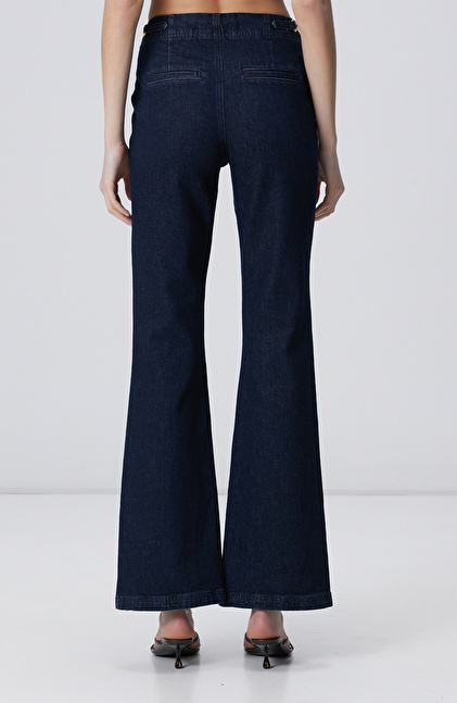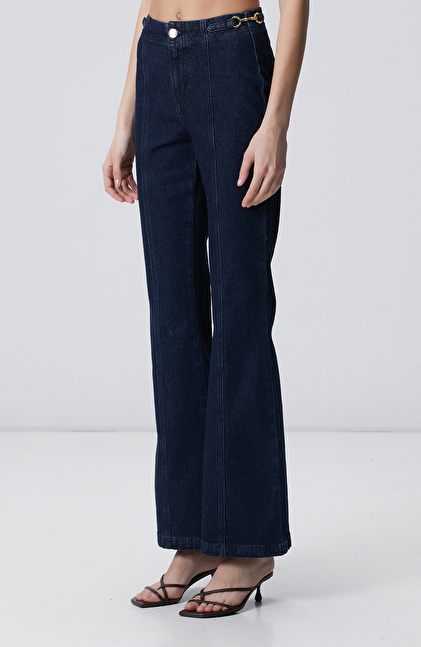 NETWORK Casual Lacivert Bel Aksesuar Detaylı Flare Denim Pantolon