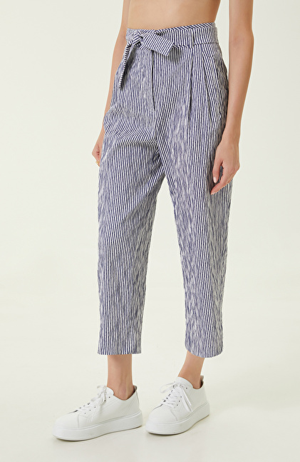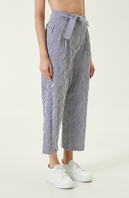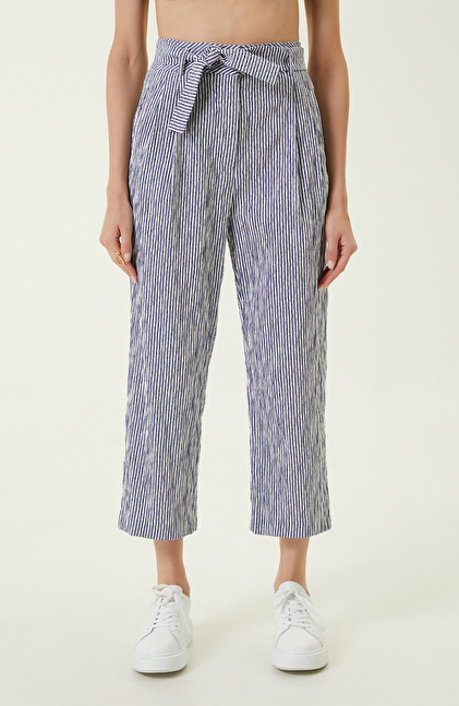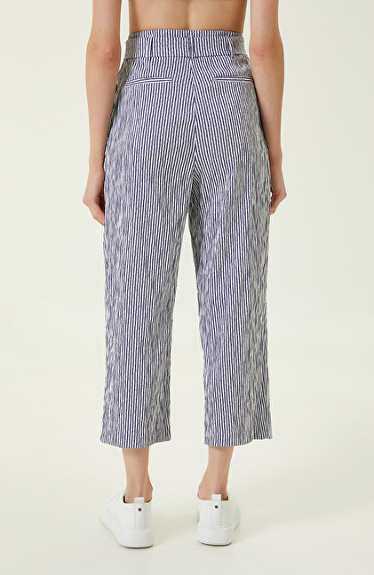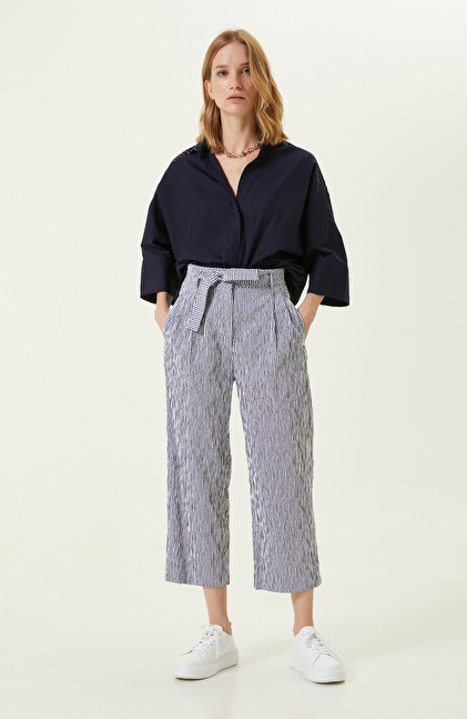 Lacivert Beyaz Beli Büzgülü Pantolon