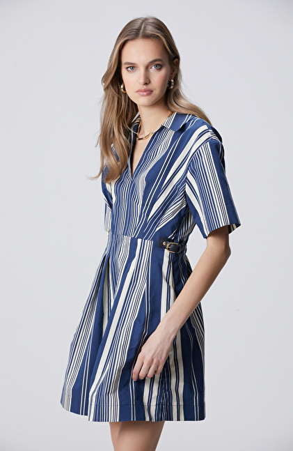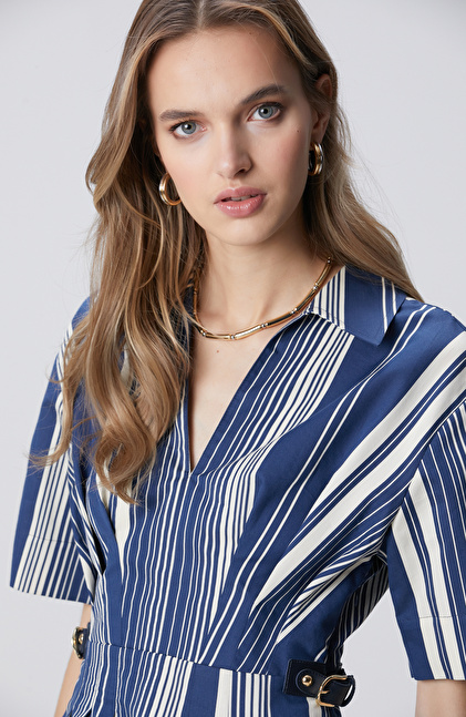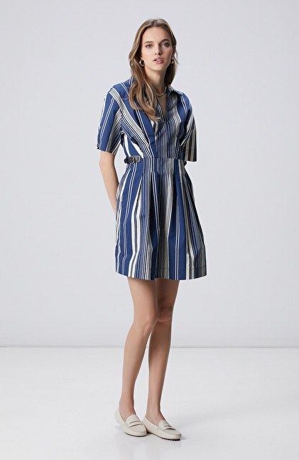 NETWORK Smart Casual Lacivert Beyaz Çizgili Elbise