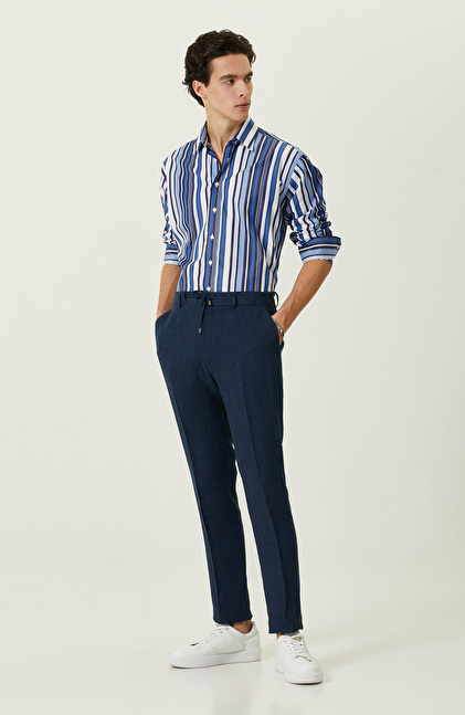 NetWork’ün Smart Casual stiline vurgu yapan Lacivert Beyaz Çizgili Comfort Fit Gömlek, her alanda kusursuz bir görünüm arzu edenlerin tercihi olabilir. Alttan britli yaka tasarımı kravat gibi aksesuarları desteklerken yüksek pamuk oranıyla premium kumaş kalitesi sunar. Bu tasarım sayesinde profesyonel iş hayatında lüks dokunuşlar barındıran kombinler yapmanız mümkün. Ayrıca comfort fit kesimi ve karşıt renklere sahip çizgili yapısı, rahatlık ve şıklığı birleştirir. Çizgili comfort gömlekle güçlü bir tarz yaratmak için lacivert pantolon, sade bir kravat, indigo blazer ceket ve deri ayakkabılar kullanabilirsiniz.