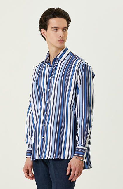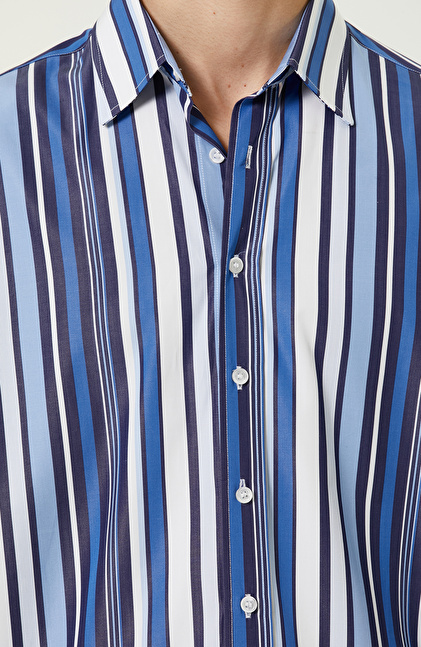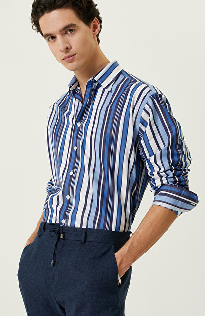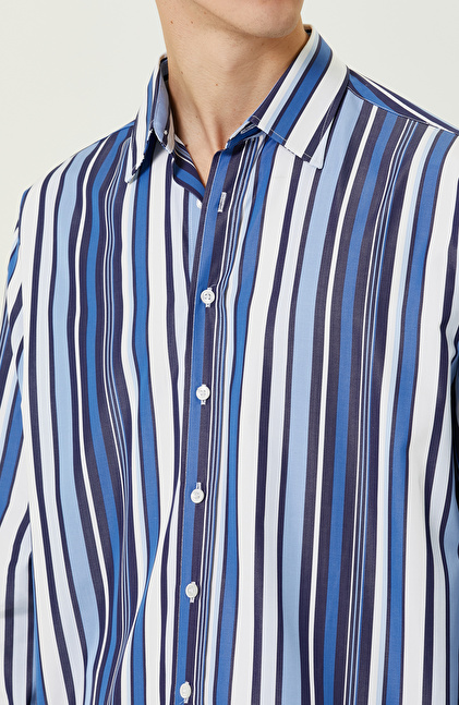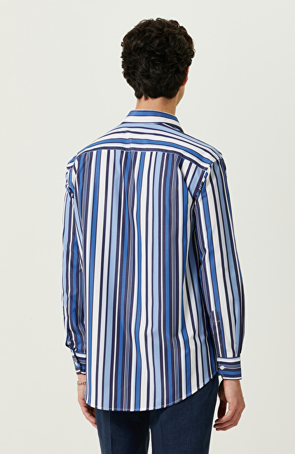 Lacivert Beyaz Çizgili Gömlek