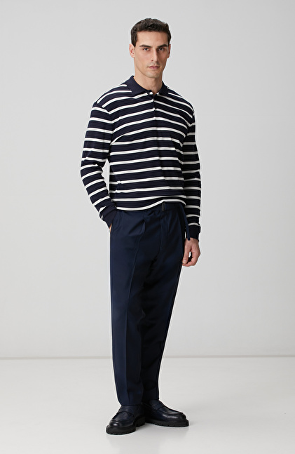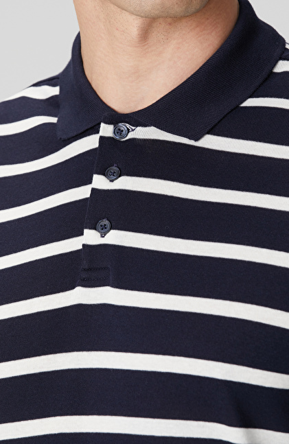 Lacivert Beyaz Çizgili Polo Yaka Sweatshirt