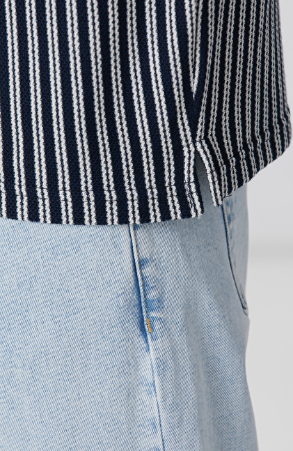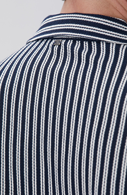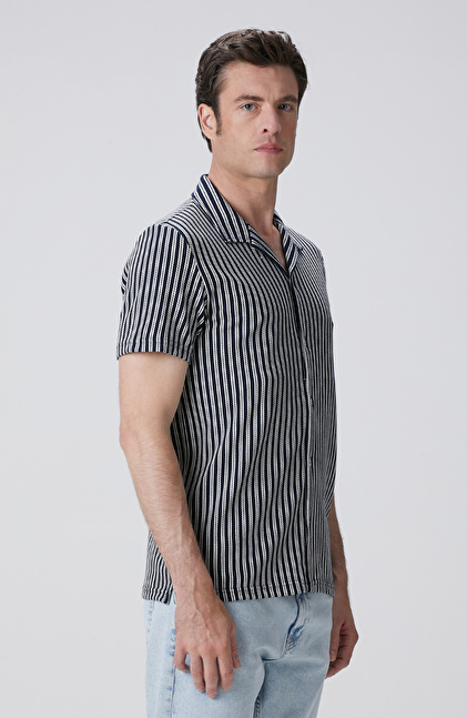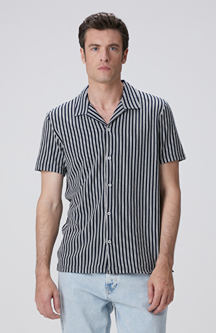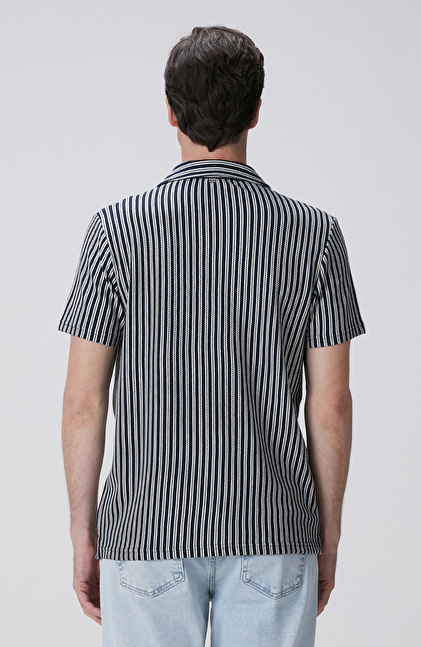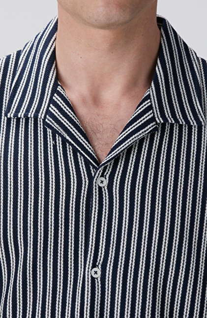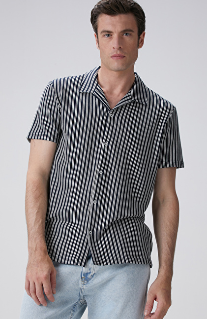 Comfort Fit; Apaş Yaka; Kısa Kol; Çizgili; Örme Gömlek