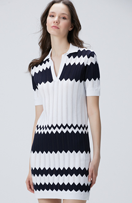 Basic Fit; Gömlek Yaka; Ajur Örgü Desenli; Midi Boy Elbise; Normal Bel; Kolsuz; Cepsiz
