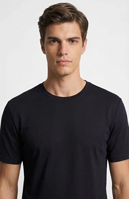 Lacivert Bisiklet Yaka Pike Desenli Basic T-shirt