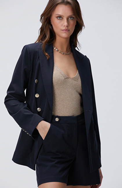 Regular Fit; Kruvaze Yaka Blazer Ceket