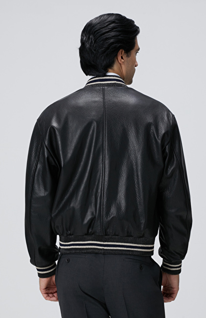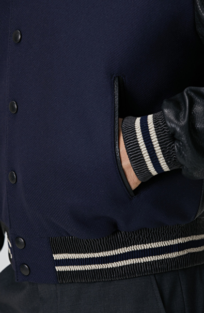 Lacivert Bomber Deri Mont