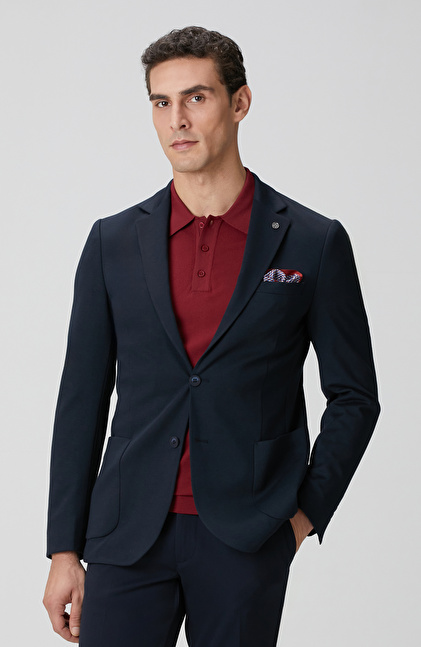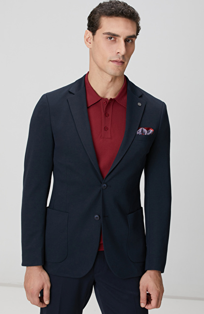 Slim Fit; Mono Yaka; Uzun Kol; Örme Ceket; Cepli