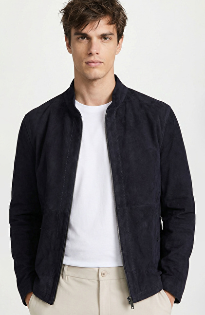 Slim Fit; Dik Yaka; Fermuarlı; Uzun Kol; Süet Mont; Çift Taraflı; Yan Cepli