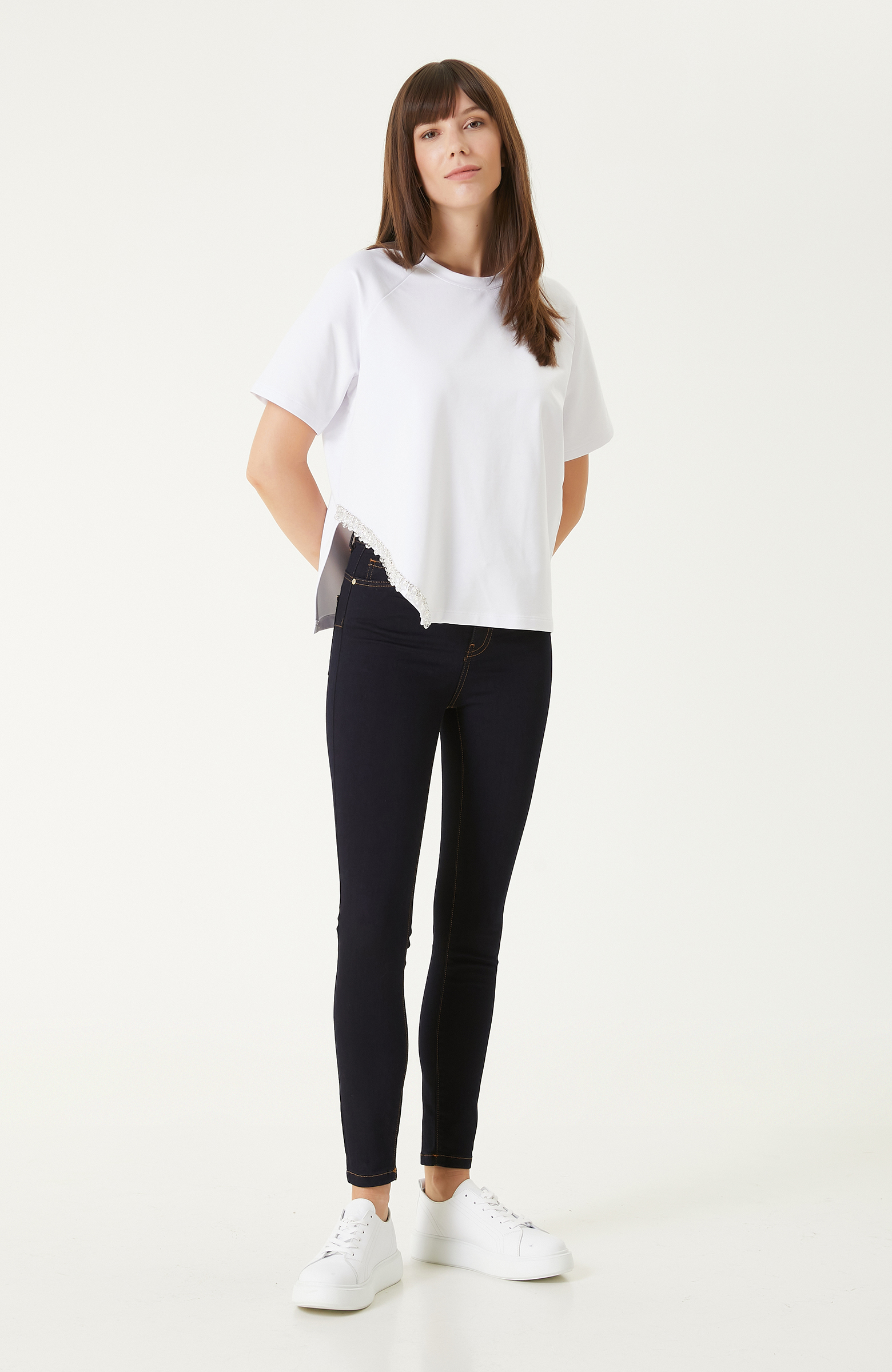 Lacivert Push-Up Denim Pantolon, sezonunda kullanılmak üzere hazırlanan NetWork’ün dinamik ve lüks parçalarındadır. Yüksek kaliteli kumaşlar ile tasarlanan model, denim yapısı ile şık aylarında kullanıma uygundur. Dar paça ve normal bel detaylarıyla öne çıkan parça, basic fit kesimi sayesinde vücutta mükemmel bir duruş yakalar. Şehirli ve zamansız stile sahip kadınlara hitap eden tasarım, NetWork Casual koleksiyonuna dahildir.