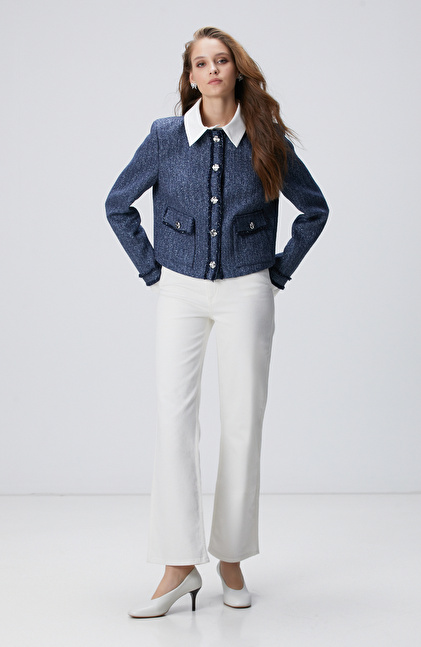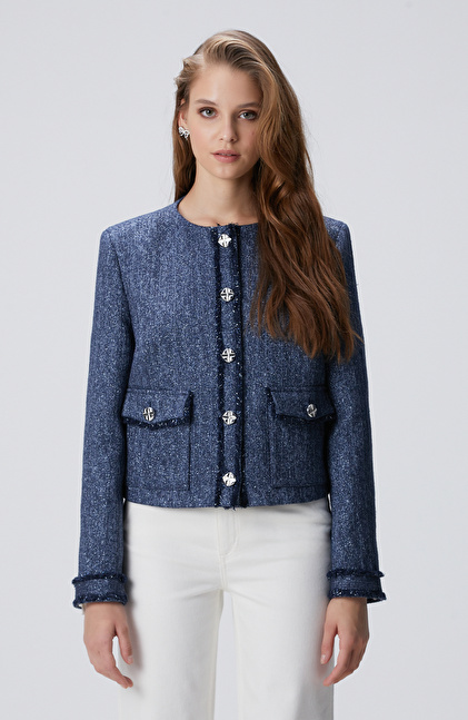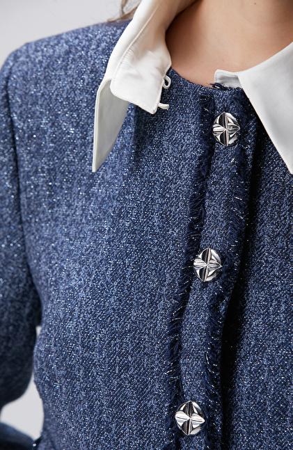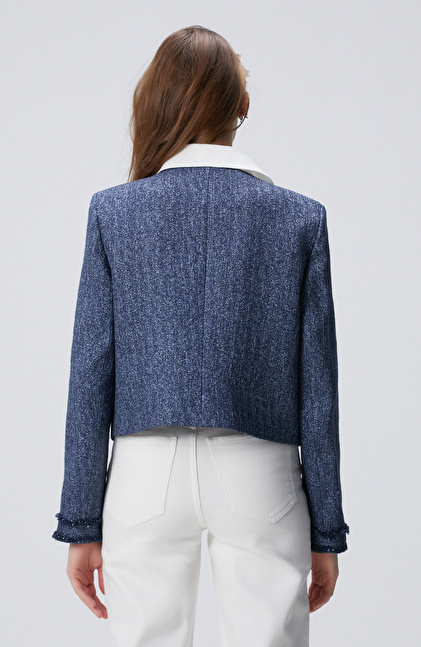 Lacivert Desenli Çıkarılabilir Yakalı Ceket