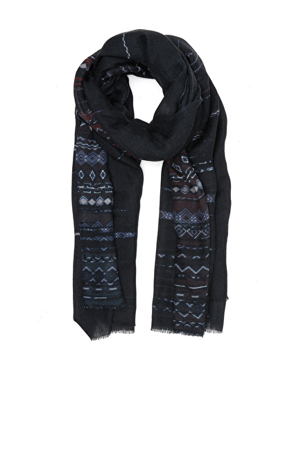 Lacivert Desenli Erkek Yün Şal