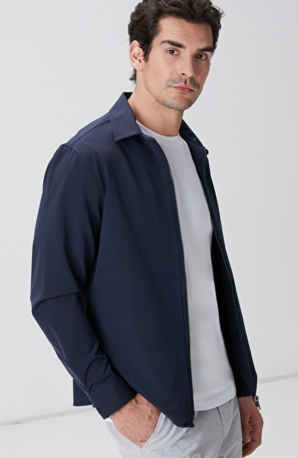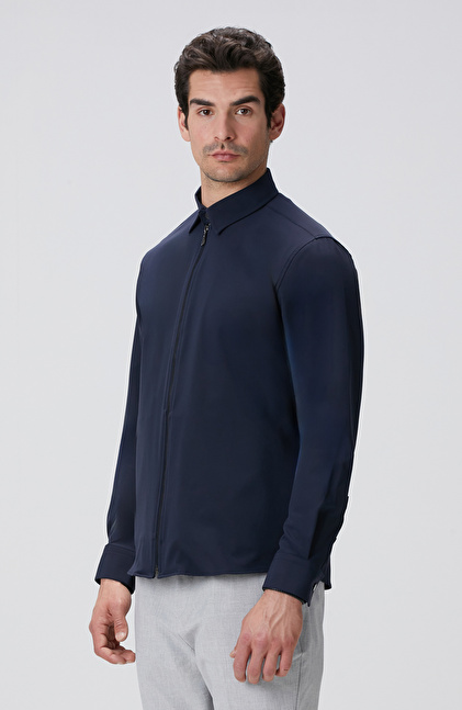 Slim Fit; Gömlek Yaka; Fermuarlı; Göğüs Cep Detaylı Dış Gömlek
