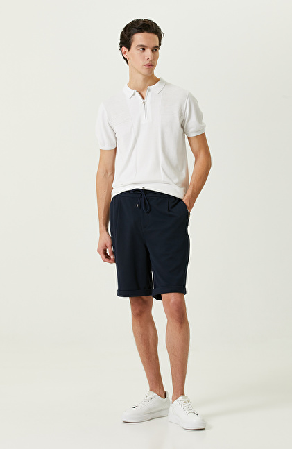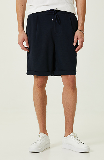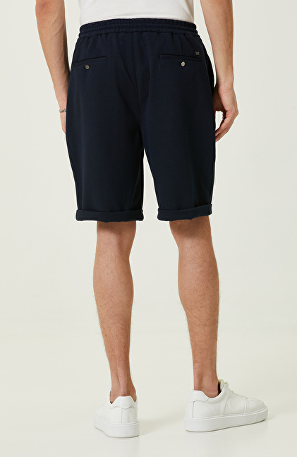 Lacivert Duble Paça Örme Şort
