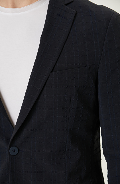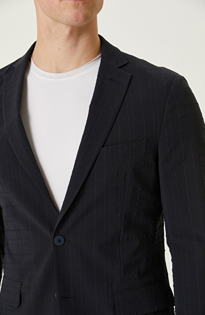 Lacivert Ekose Desenli N-Tech Ceket