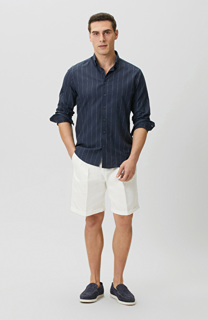 Lacivert-Ekru Gömlek